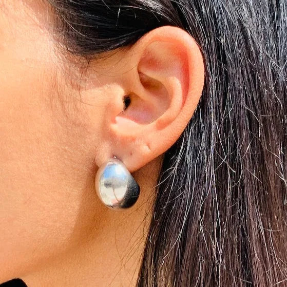 Add a bold edge to your jewelry collection with our Silver Dome Hoops—a striking blend of modern design and timeless sophistication. Their chunky silhouette offers a polished statement that enhances both casual and refined looks.