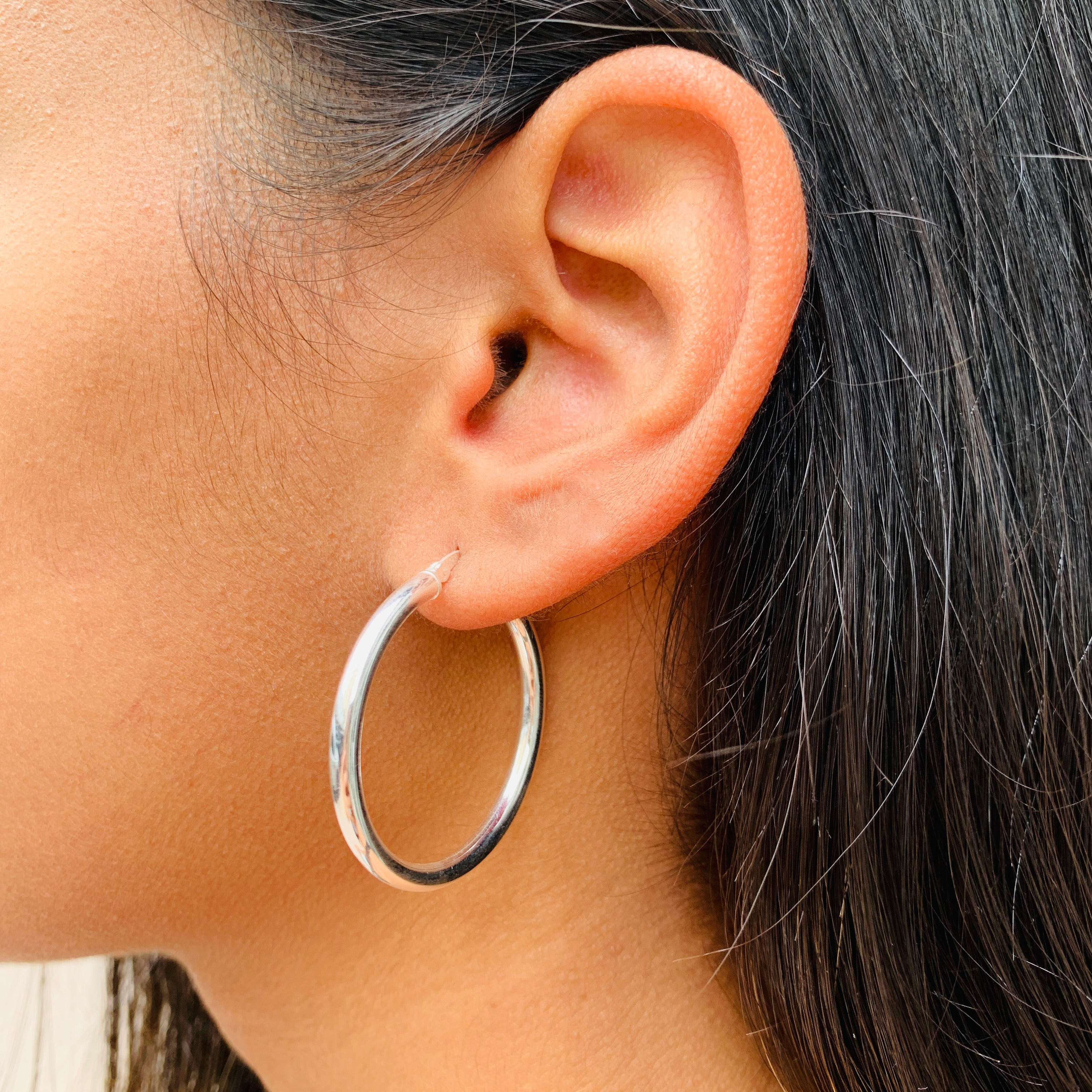 Enhance your jewelry collection with these sleek sterling silver hoops designed for both style and durability. Their polished finish adds a refined touch, making them a reliable choice for any occasion, from casual outings to more elevated looks.