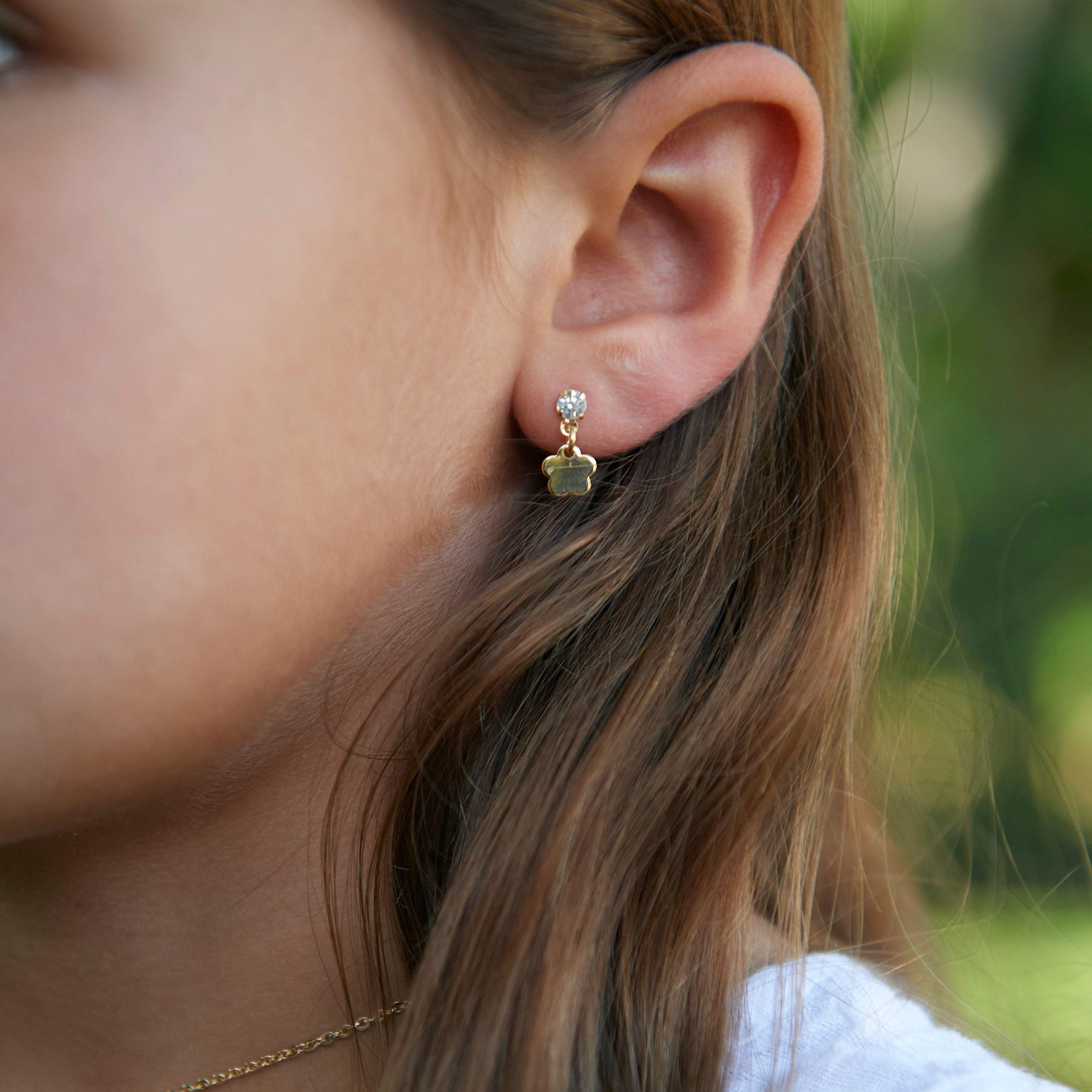 Our Skylar CZ Flower Earrings are a whimsical mix of sparkle and movement. Perfect for twirling through special moments or adding a touch of fun to everyday outfits. Delicate and eye-catching, they’re made to shine with every step she takes.