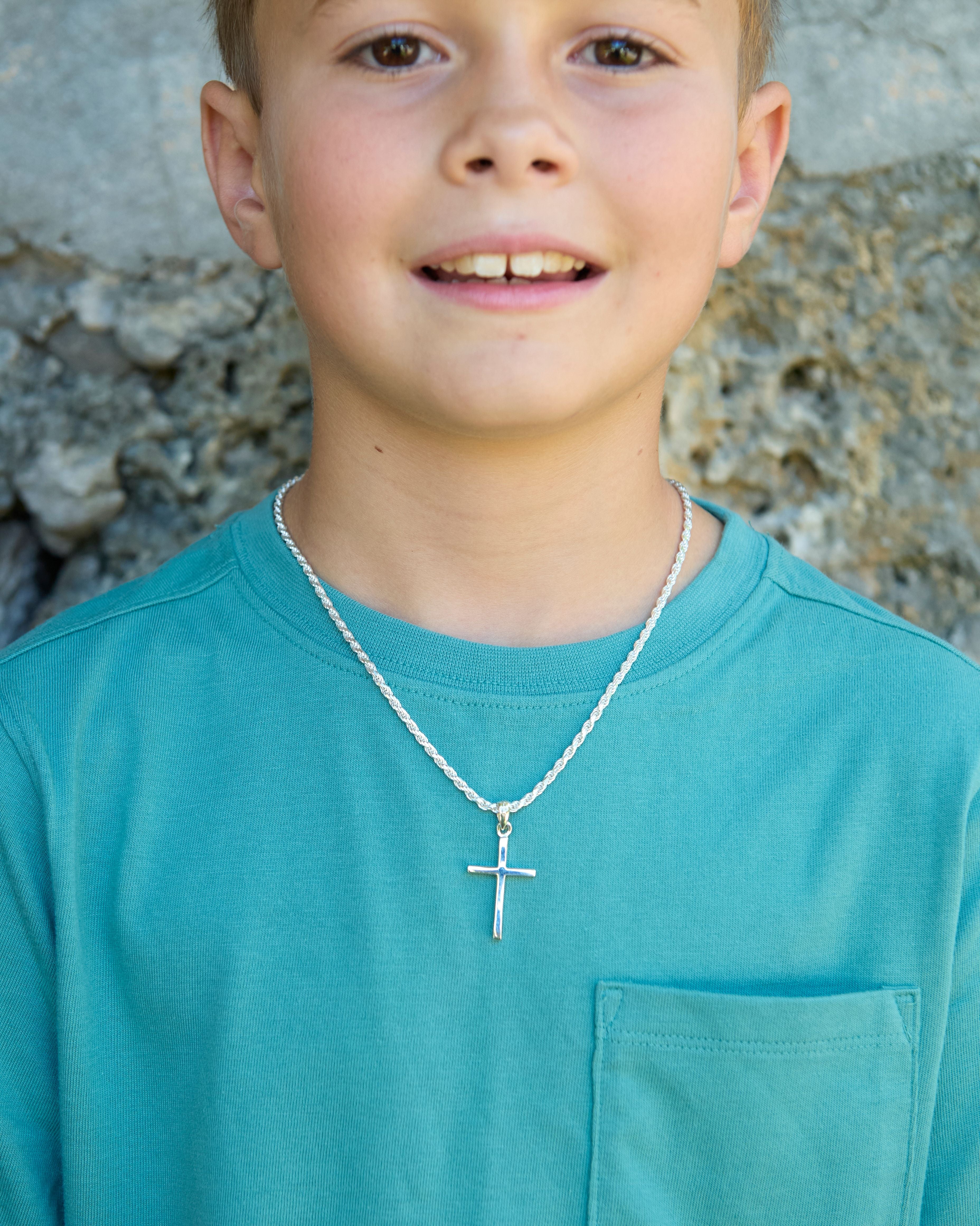 A beautiful symbol of faith, love, and protection, the gold-filled Thayer Cross Necklace for boys is a meaningful piece designed just for little ones. With its soft shine and classic design, it adds a gentle touch of grace to both special days and everyday wear.