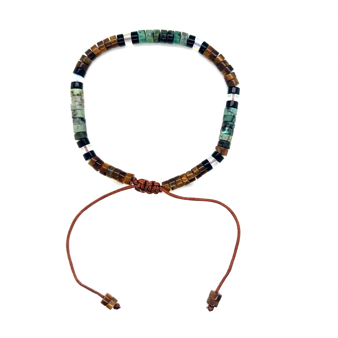 Experience the rugged charm of our Glenn Tiger Eye Macrame Bracelet, a perfect blend of strength and style. This unique bracelet features durable macrame knots combined with mixed gemstones, creating a bold yet refined accessory. Ideal for everyday wear, it's perfect for adding a touch of individuality to any outfit, whether you're at the beach, a casual outing, or looking to add a rugged accent to your wardrobe.